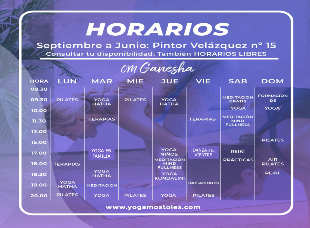 Horarios de Septiembre a Junio.Por favor consulta disponibilidad